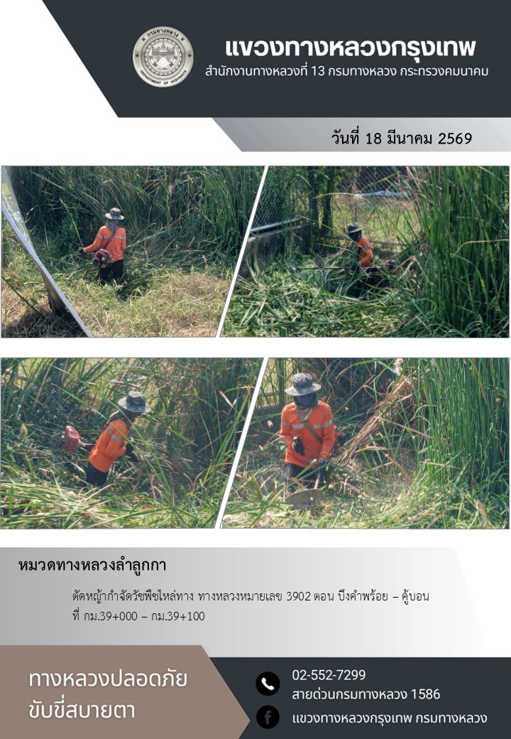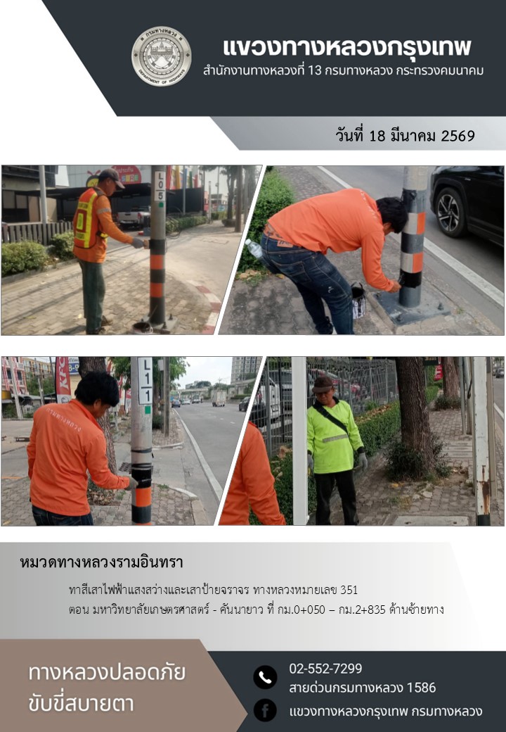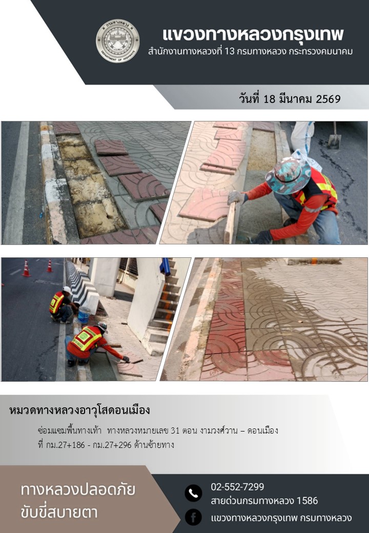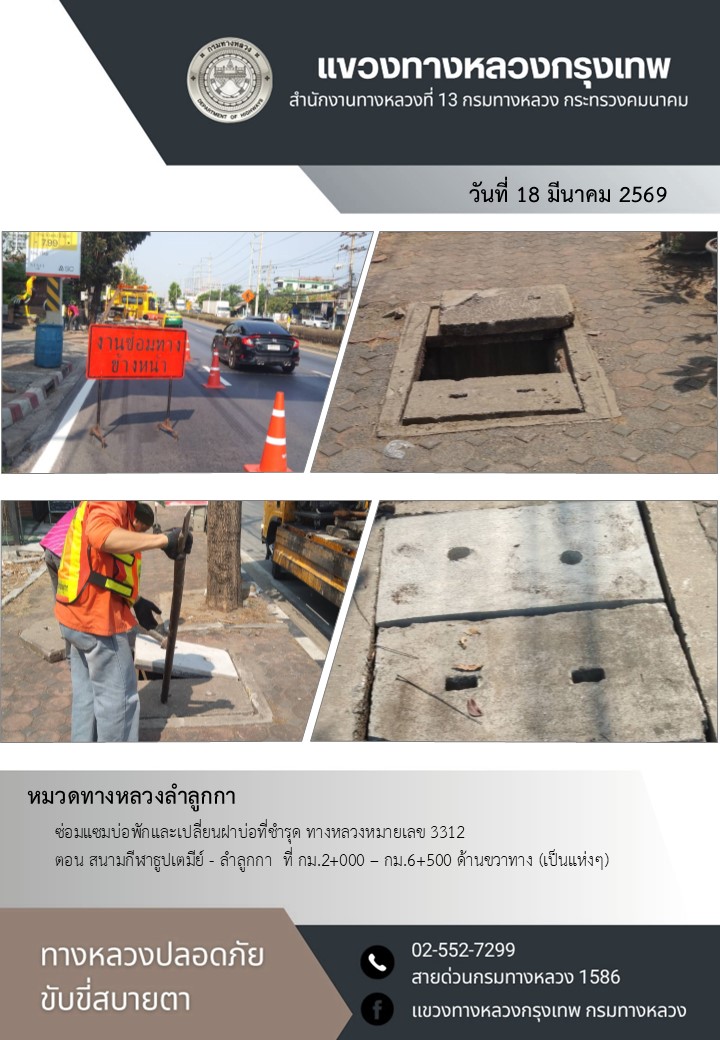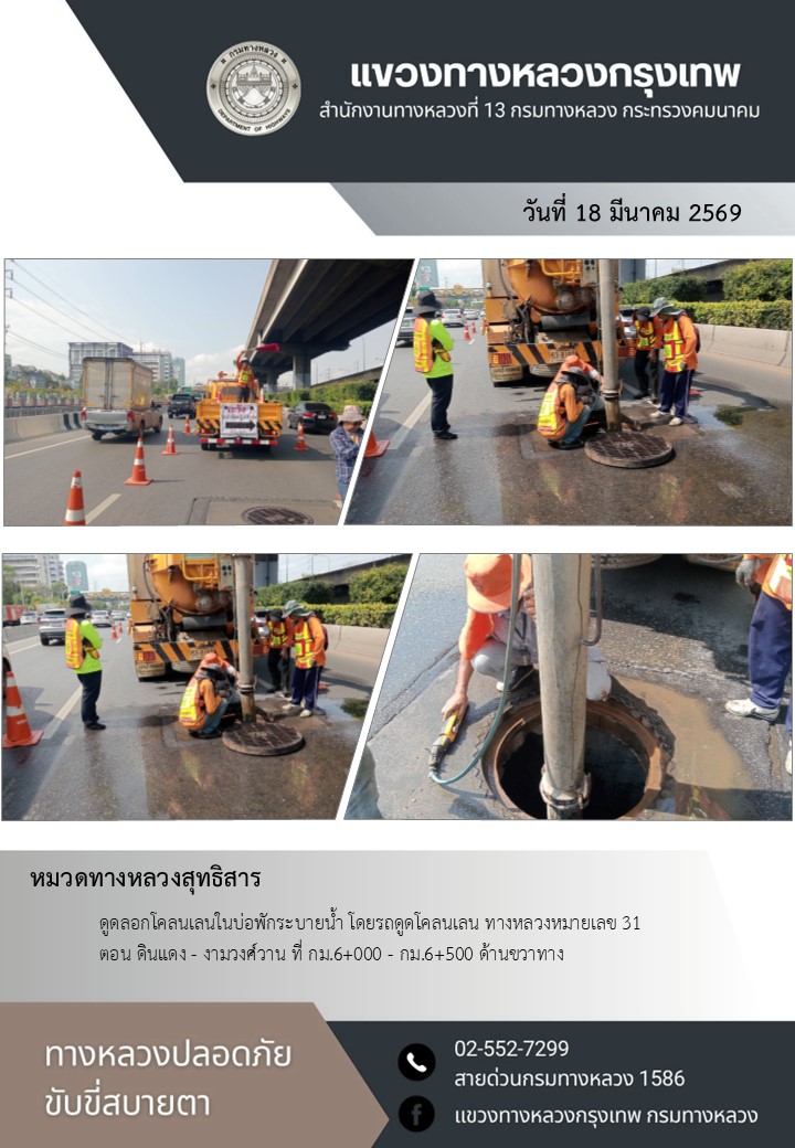 "ทางหลวงปลอดภัย ขับขี่สบายตา แขวงทางหลวงกรุงเทพ" ประจำวันที่ 18 มีนาคม 2569