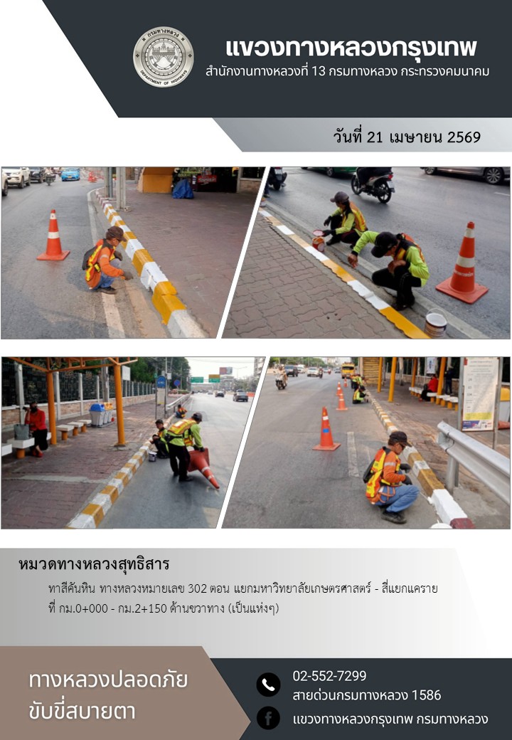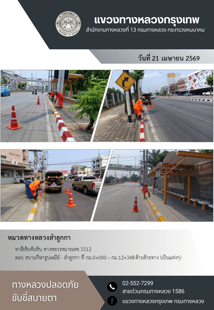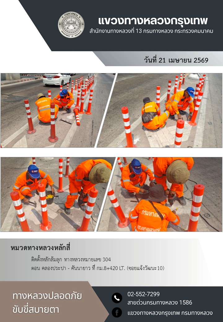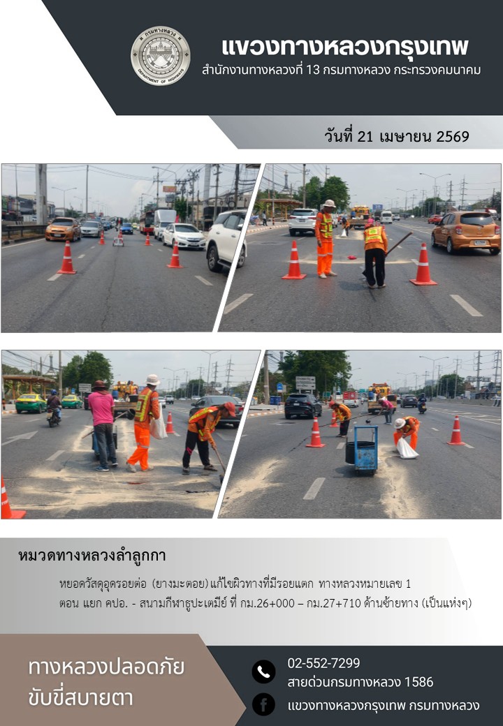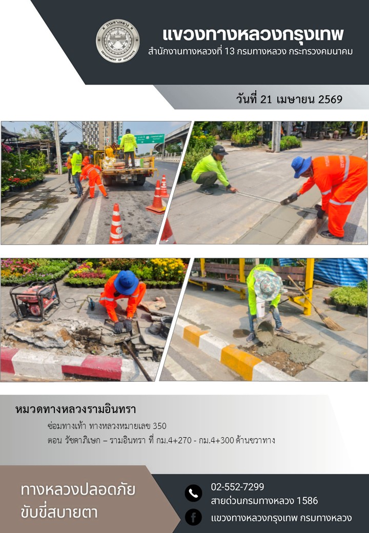 "ทางหลวงปลอดภัย ขับขี่สบายตา แขวงทางหลวงกรุงเทพ" ประจำวันที่ 21 เมษายน 2569